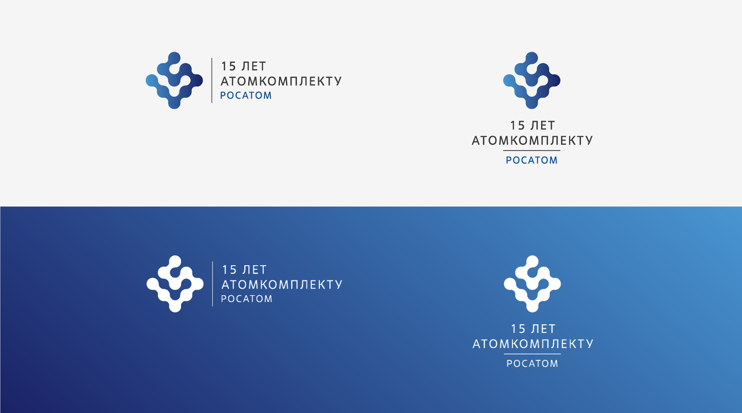 Atomkomplekt is a structural organization of the Rosatom state corporation that provides integrated equipment supplies and digital solutions for nuclear industry companies. The task was to create a commemorative logo for the company's 15th anniversary that would reflect its technological expertise, emphasize its affiliation with the Rosatom ecosystem, and convey the company's values.