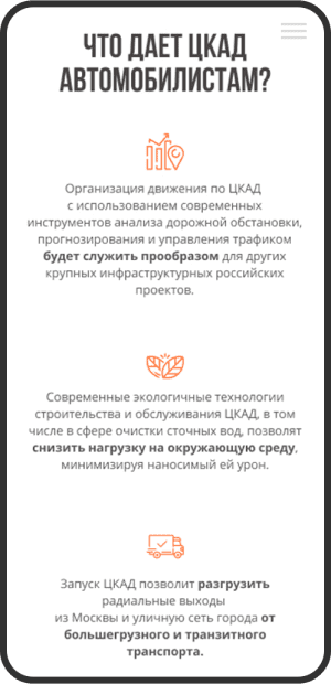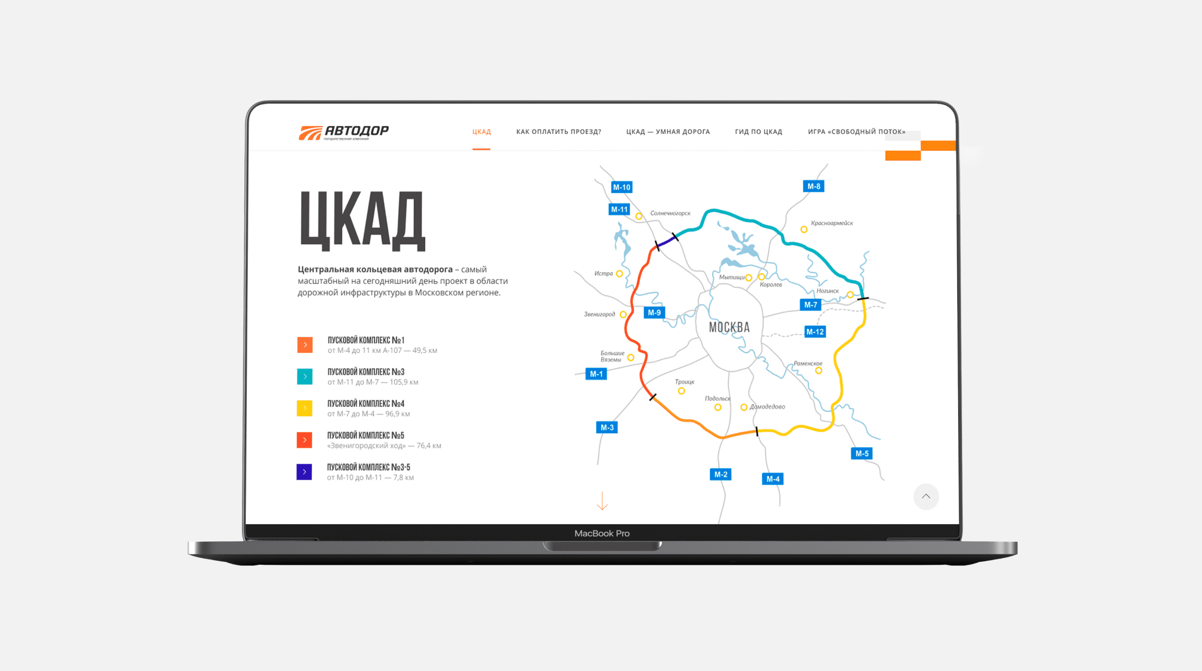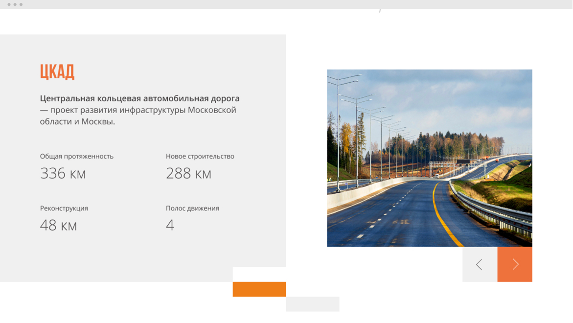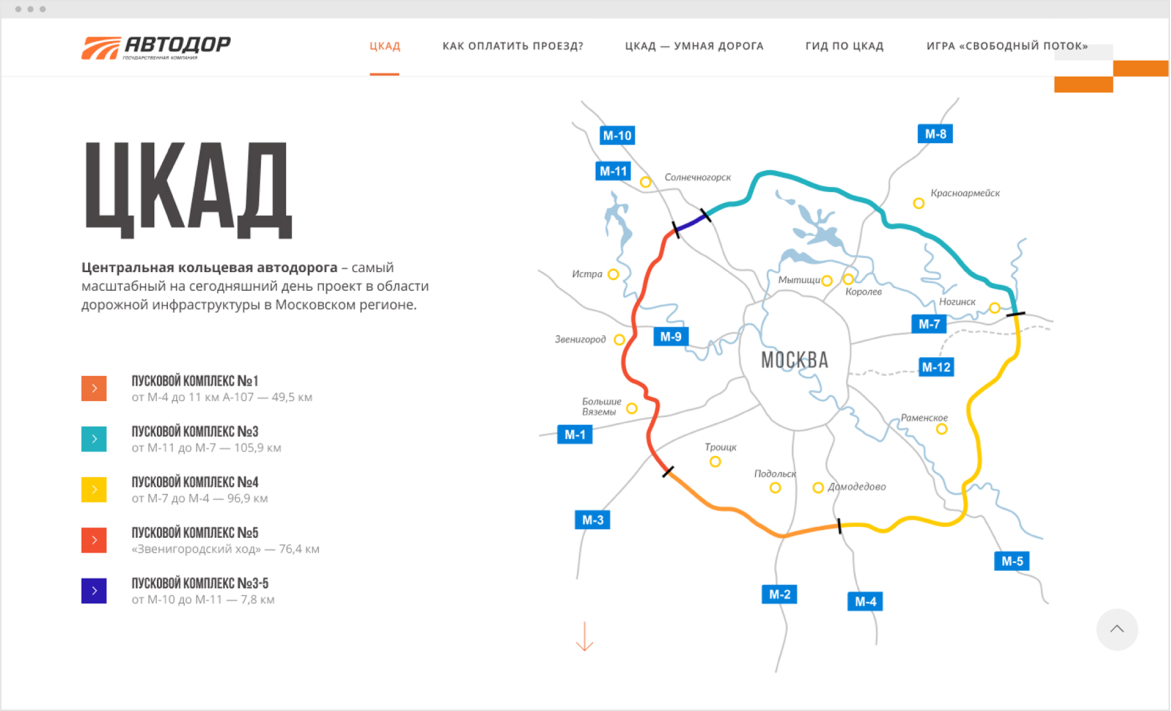 The Central Ring Road is an infrastructure development project for the Moscow Region and Moscow. We've developed a website that presents this largest road infrastructure development project to car owners.