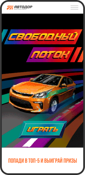 A game in the style of retro racing games was developed for the site, in which you need to collect the most points in 40 seconds to win.