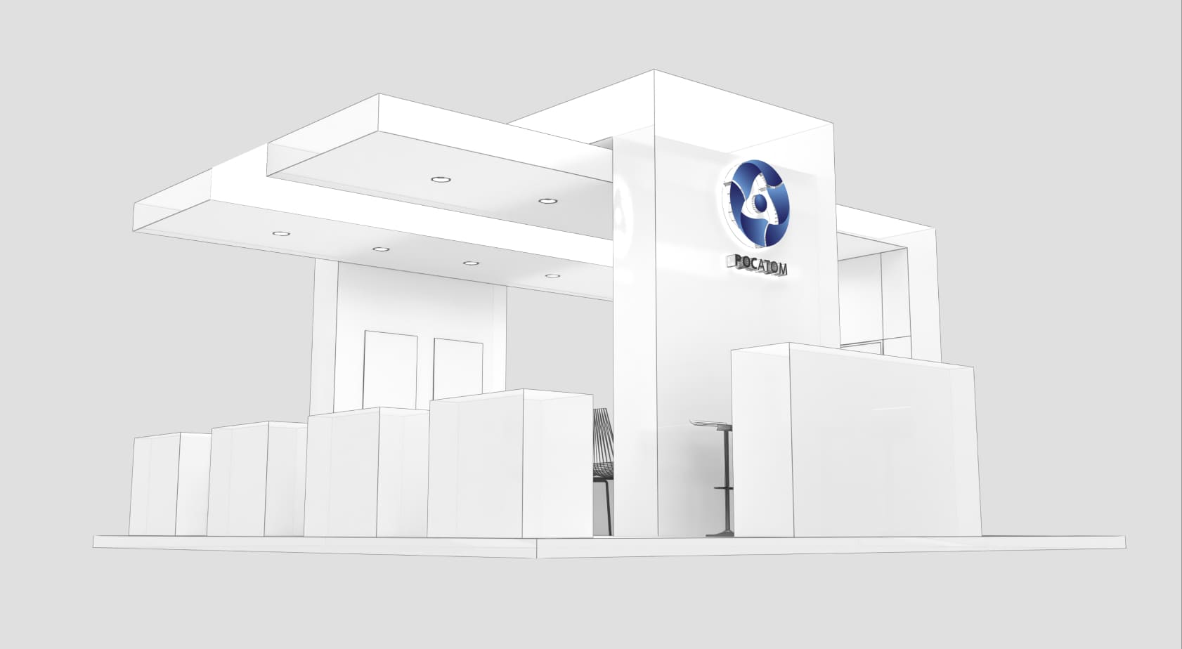 The exhibition space's design concept demonstrates the company's openness; straight, clear lines emphasize confidence in the company's chosen path, while the color scheme reflects the purity inherent in nuclear energy.